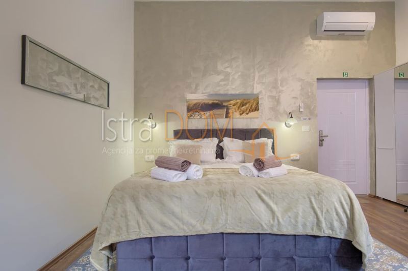 Eksluzivni stan u strogom centru grada površine 140 m2, u okolici tržnice. Nalazi se na prvom katu stambene zgrade. Sastoji se od dva studio apartmana i jednog jednosobnog stana sa balkonom . U stanove se ulazi iz centralnog hodnika. Stan ima i centalni (