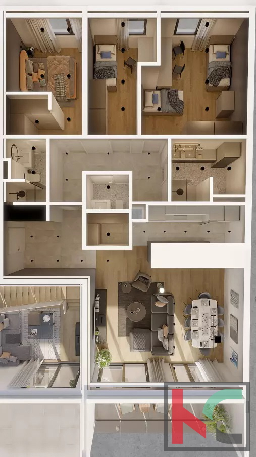 Prodaje se stan u izgradnji dokazanog investitora na atraktivnoj lokaciji u samom centru grada Pule. Stan se nalazi na 2.katu, ukupne površine 130,31m2, a sastoji se od dvaju hodnika, kuhinje, blagovaonice, dnevnog boravka, dvije kupaonice, WC-a, tri spa