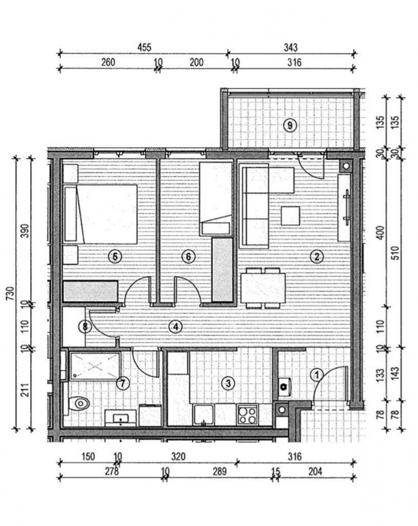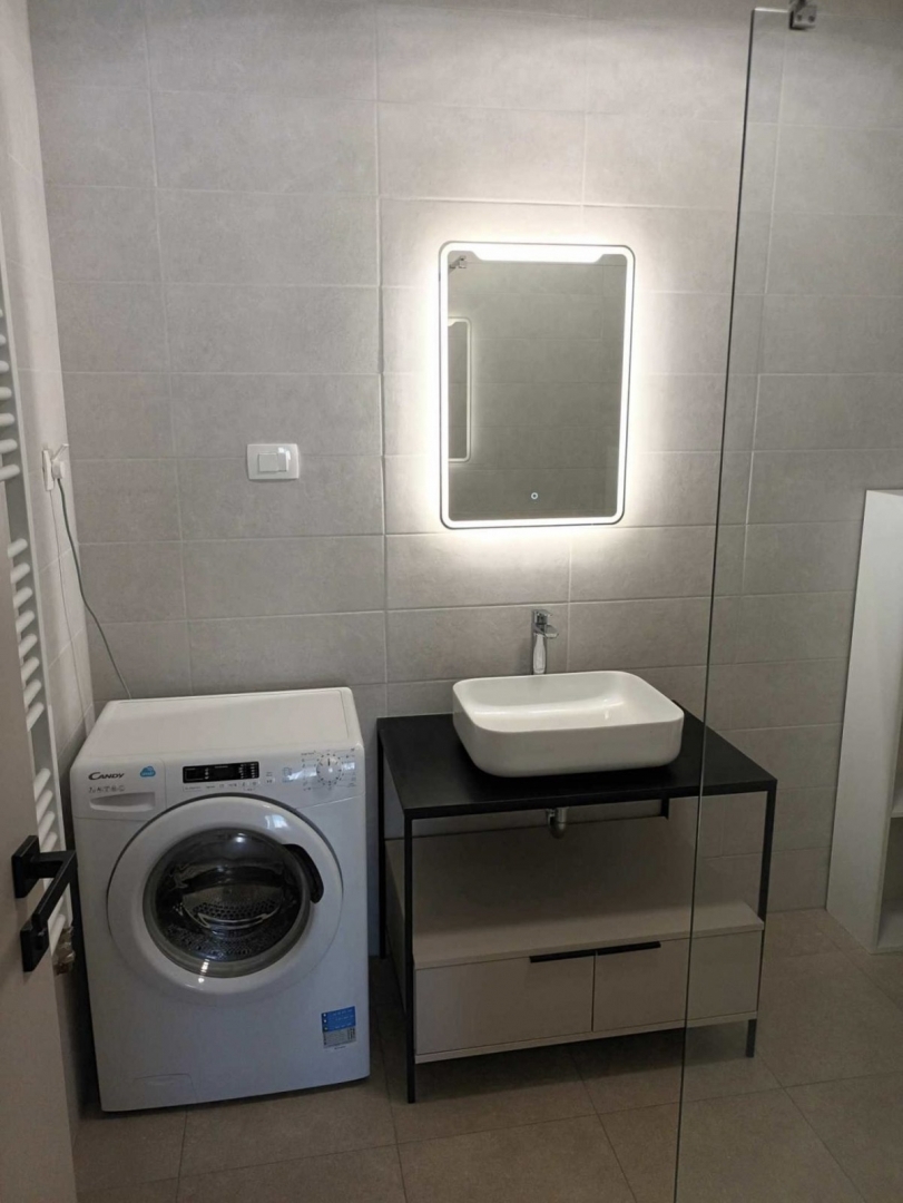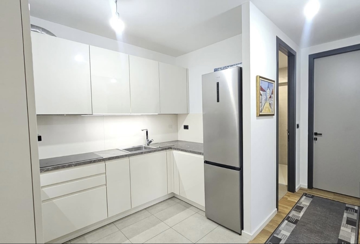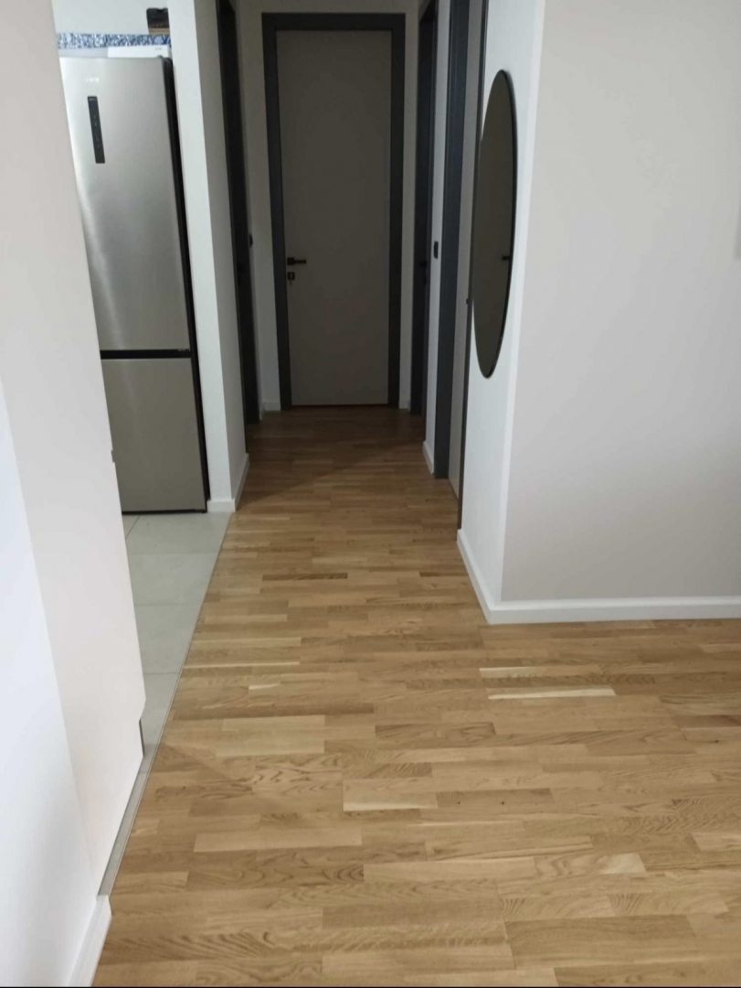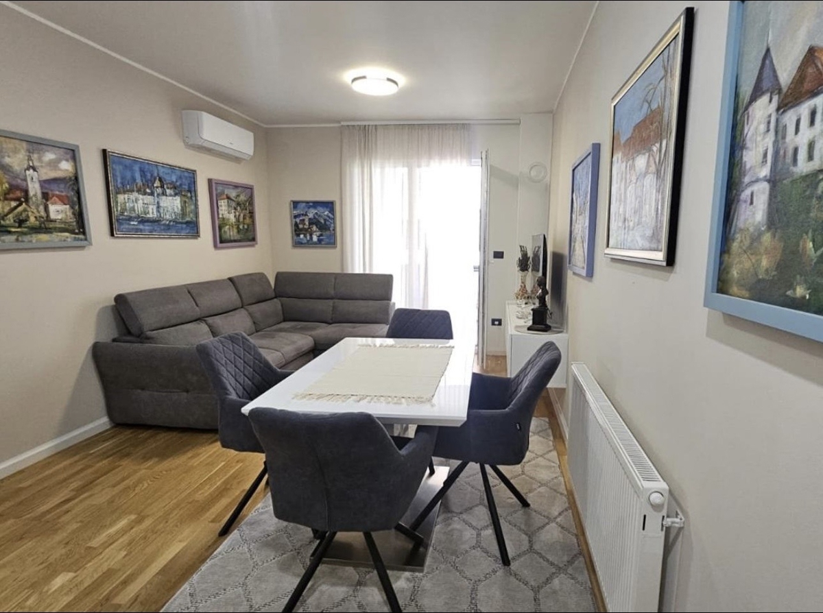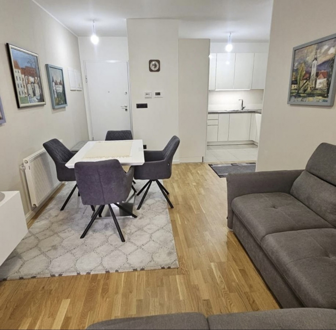 U prodaji je ovaj stan u novogradnji sa liftom na četvrtom katu. Stan se sastoji od ulaznog hodnika 2,83m2, dnevnog boravka sa blagovaonom 15,95m2 i kuhinjom 6,17m2,dvije spavaće sobe 10,11m2 i 7,79m2, kupatila 5,46m2, izbe 1,64m2 i lođe 4,62m2, te vlasn