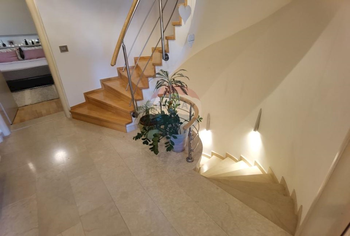 Prodajemo komforan i luksuzan stan na lijepoj lokaciji. Stan se nalazi na prvom katu obiteljske kuće i prostire se na dvije etaže. Koncipran je na način da se unutarnjim stepenicama koje su obložene lijepim mramornim kamenom ulazi u predsoblje stana te s