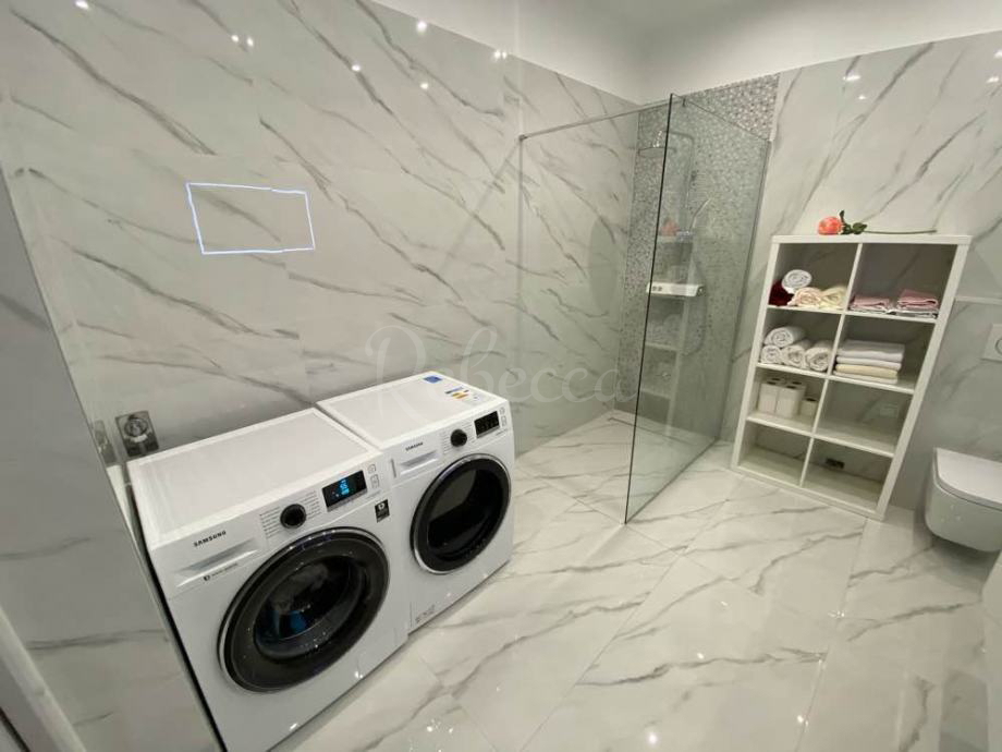 Prodaje se kompletno uređen i namješten stan u prizemlju površine 85 m2, sa konobom u suterenu od 120 m2, garažom i poslovnim prostorom od 85 m2. Nekretninea se nalazi na vrlo atraktivnoj lokaciji. Idealna prilika za poslovno stambenu namjenu. Udaljenost